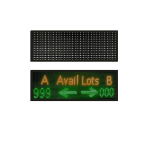 It receives data from server or application in real time, and show the availability of parking spaces in different zones or the entire parking area by numbers, arrows and text.